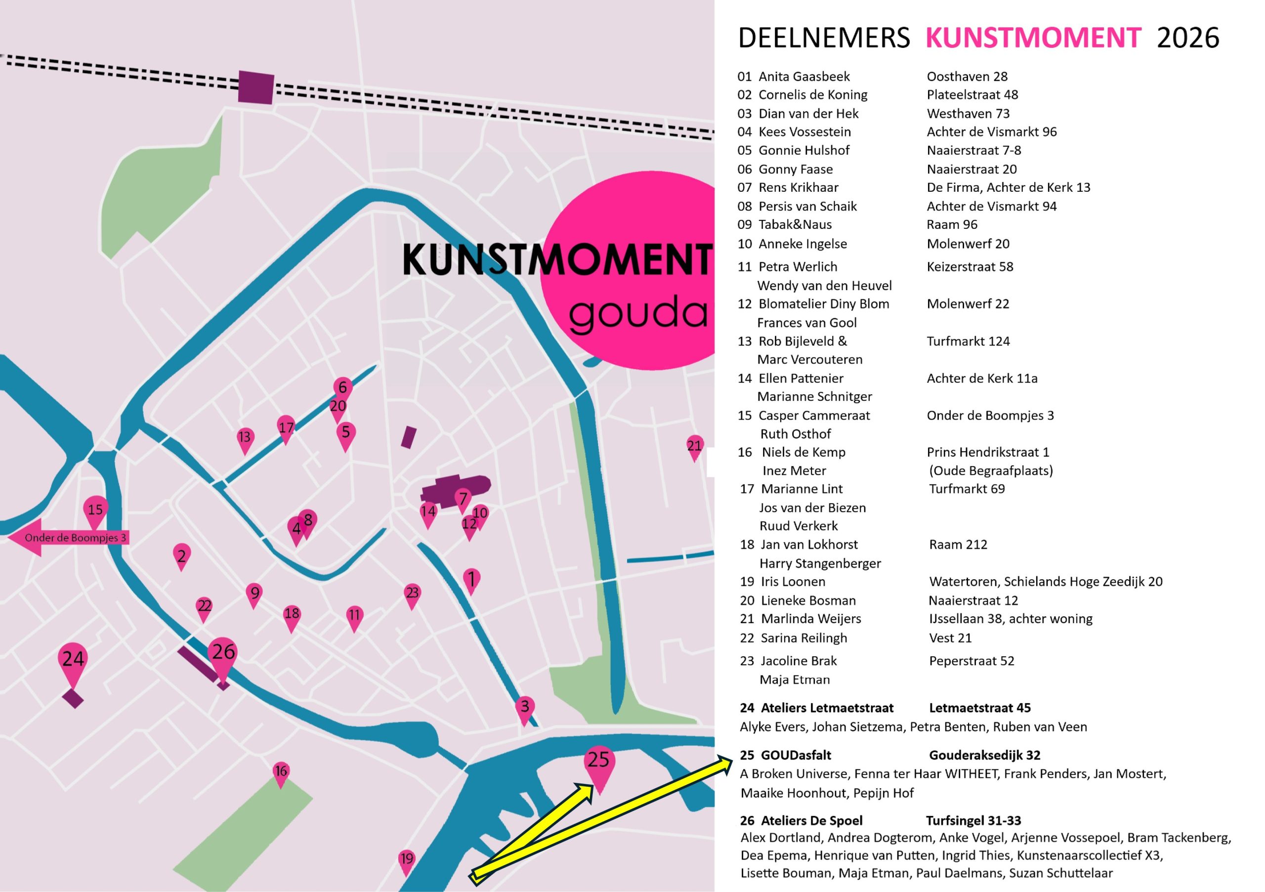 Ook GOUDasfalt maakt onderdeel uit van de route van dit evenement met de deelnemers Fenna ter Haar WITHEET, Frank Penders, Jan Mostert, Maaike Hoonhout en Pepijn Hof (zoals ook vermeld op de plattegrond):