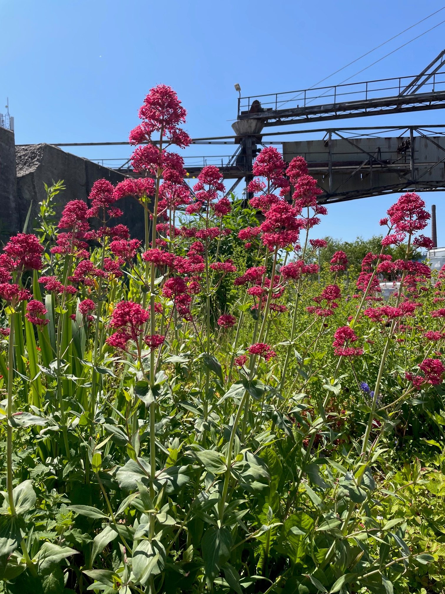 Begin juni ziet de Warmoezerij er weelderiger en mooier uit dan ooit. Na een koel en vochtig voorjaar staan alle kruiden en planten tegelijk in bloei en het is een groen lustoord tussen de betonnen wanden waar ooit de zand- en grindopslag van de asfaltfabriek was.