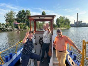 Een tijdje geleden komt er bij de vrijwilligerscoördinator van GOUDasfalt de vraag binnen of er op het pontje plaats is voor inburgeraars. Een mooi verzoek dat in de app-groep van de veerlieden leidt tot een aantal enthousiaste reacties. Dineke, Cokkie, Vincent en Louis laten weten dit heel leuk te vinden en graag voor de begeleiding willen zorgen.